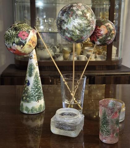 Spotkaliśmy się na warsztatach twórczych decoupage. Zbliża się czas świąt, dlatego tematem listopadowych warsztatów były różne ozdoby, bombki i świeczniki. Odkrywaliśmy nowe możliwości w tej technice. Zrobiliśmy piękne świeczniki z zastosowaniem lakieru tzw. szronu oraz różnych skrawków pasmanterii, tasiemek, odpadów recyklingowych.